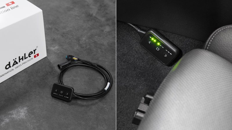 Also included in the scope of delivery is an adapter which, when installed, returns the vehicle to its original state without having to remove the cable harness of the dAHLer engine performance upgrade. This can be used, for example, at a workshop appointment.