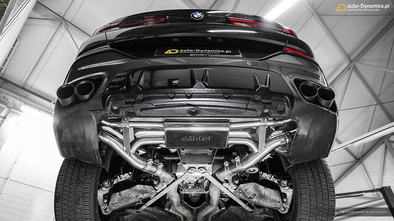 The dÄHLer exhaust system includes a high-flow, stainless-steel performance muffler and comes with exhaust valves by using the original BMW actuators.